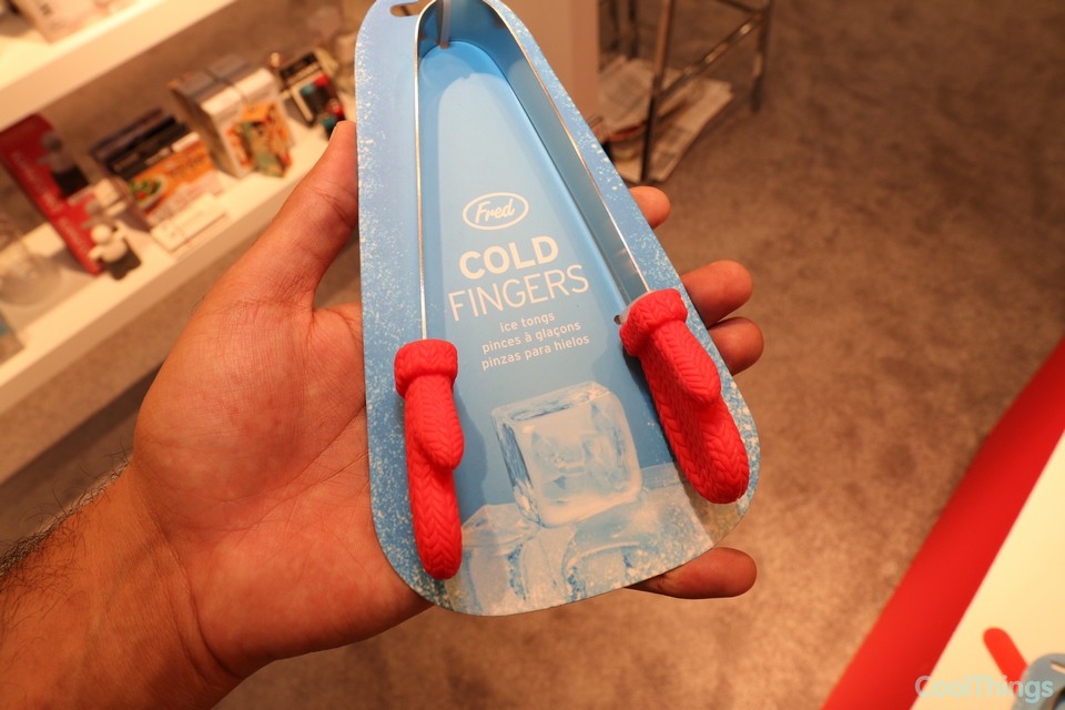 A novelty pair of tongs, it features little silicone mittens on the business end to keep things warm and toasty when fetching ice cubes for dumping into your glass of whiskey. Looks almost like a pair of puppet hands mining ice cubes from the bucket. Very cute.