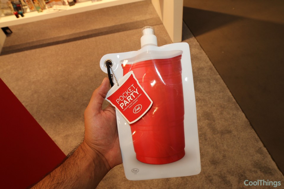 This portable wine flask is made from a soft material that allows it to be easily rolled and packed when empty for easy storage. Sized to fit in your jeans’ back pockets when full, it can hold up to 12 fluid ounces of your favorite drink, just waiting to be swigged. Made from flexible PVC with a food-safe PET liner, it features a red party cup graphic for giving the flask that old college party feel.