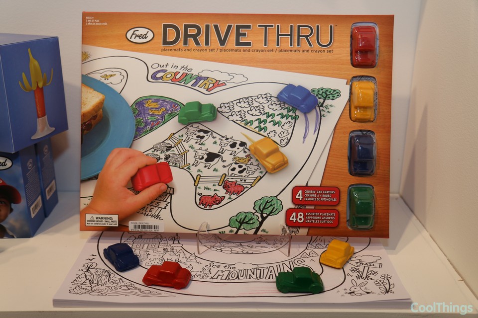 This set of paper placemats come with four different illustrated prints of driving roads that your kids can navigate with their custom Hot Wheels cars while they wait for dinner to start. It also includes four car-shaped crayons that they can use as alternative, both for driving down the picturesque roads or filling up the black and white scenes with lovely colors. Each placemat measures 15 x 10.75 inches.