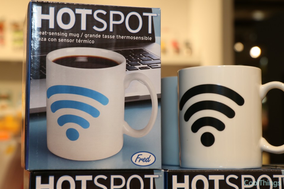 This mug features a large, black WiFi logo on the side that turns into blue when you pour hot drinks inside, then switches back to black as soon as the cup empties or cools down. Made from ceramic, it can hold 10 ounces of your favorite beverage. Oh yeah, making the thing turn blue doesn’t help your actual WiFi access whatsoever.