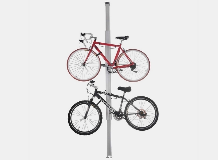 No empty wall space to set up a rack onto? Not a problem. Pick up one of these bike rack poles instead, which lets you mount up to two bikes on a pole that you can set up in any part of the house. Adjustable in height from 7 to 11 feet, the pole secures the bike by simple contact with both the floor and ceiling, eliminating the need for drilling and driving screws. Two sets of vinyl-coated arms allow it to hold up to two bicycles, with each arm able to support up to 100 pounds each, so this can hold the heaviest bikes you can throw its way. The whole thing weighs just 13 pounds.