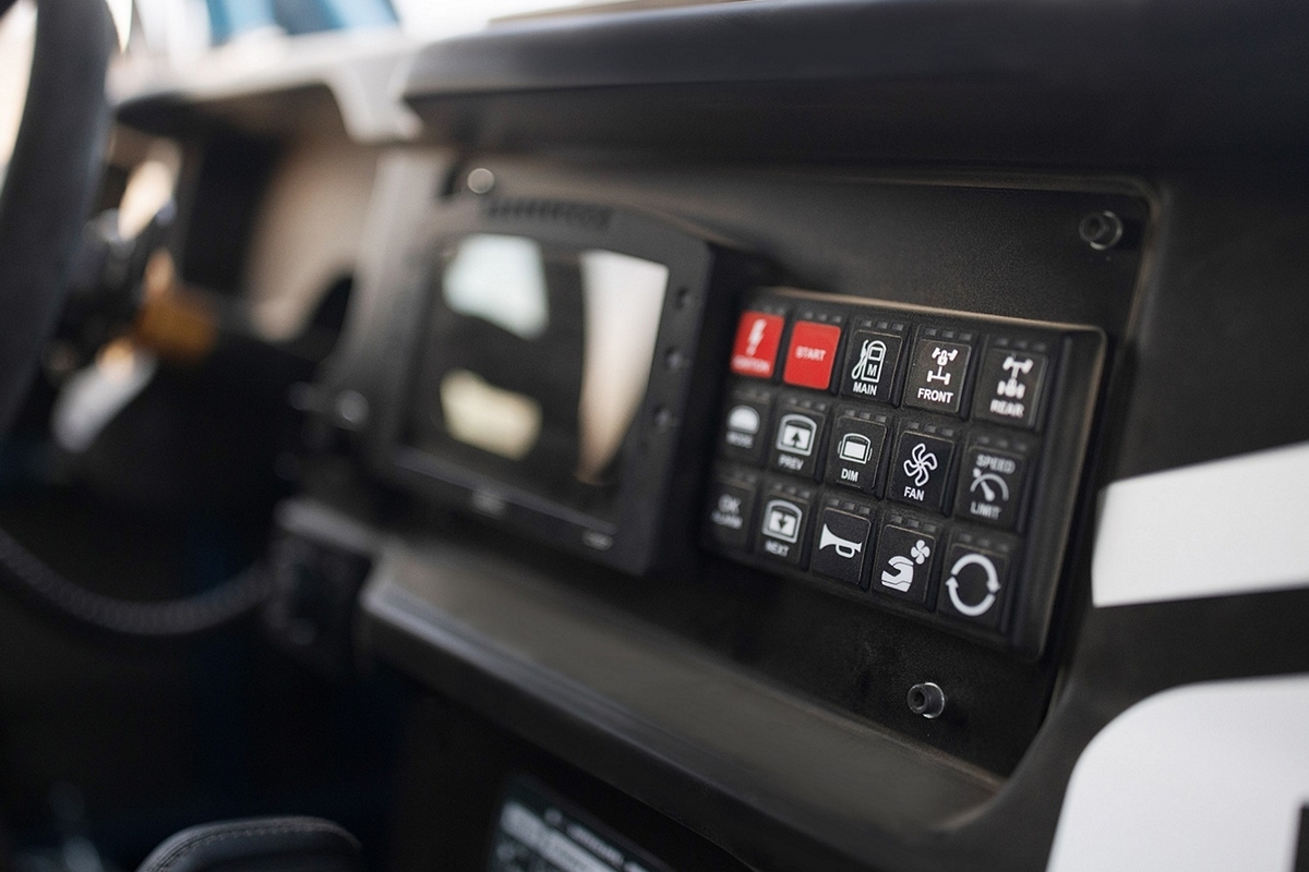Inside, the cabin gets many stock items cleaned out, from the air conditioning system and the comfortable amenities to the numerous glass panels. In its place are a bunch of racing-specific elements, such as a dashboard with pre-wired switches for all sorts of equipment and a detachable steering wheel, with sporty racing seats for two people. Yes, it only sits two despite having the same four-door chassis as the regular Bronco, with the rear space taken up by a rear-mounted radiator with massive air intakes along the roof and an enormous 65-gallon fuel tank that should give it a whole lot of range. It tips the scales at 6,200 pounds.