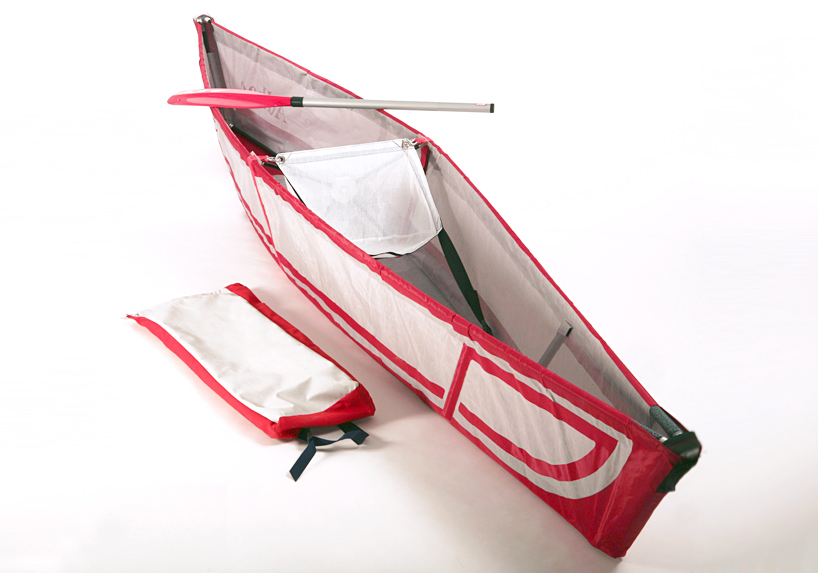 Designed by Ori Levin, it’s a folding canoe.  And we don’t mean one that folds to fit into a car either for easy transporting, either — it can literally fold right into a backpack.  That means, you can take the bus or hitch a ride with a pair of seedy-looking characters, all while carrying a fully-functional canoe with you.  Impressive.
