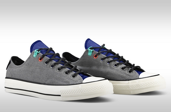 The All Star Chuck ’70 Polartec will be available in two styles: a Clematis Blue high-top and a Gargoyle Gray low-top, each with a reverse-color tongue. It’s dropping as a limited-edition model in a handful of shoe shops around San Francisco, Soho, and Canada, priced at $110.