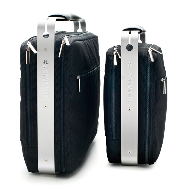 Two sizes of the Normincies Aluminum-Framed Laptop Bag will be made available — 13-inches and 15-inches.  The rub is, both are quite heavy, weighing 4.6 and 5.1 lbs., respectively.    No pricing yet.