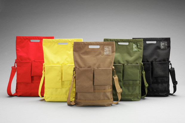 The Aluminum-Framed Laptop Bag comes with two main compartments: a padded area for your notebook with one A4-sized pocket, two flap pockets and three smaller pockets; and a large space with a divider for everything else you want to take along.  There’s also a zippered pocket in front for gear you want easy access to.