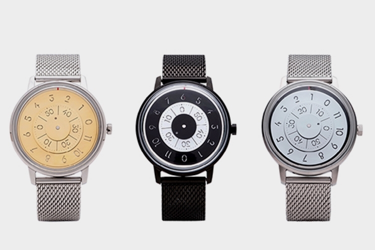 A trio of concentric circles serve as the watch face, each one individually rotating to indicate the hours, minutes, and seconds, respectively. To read time, simply check which hour and minute indicators are aligned at the single engraved line at the top of the watch, although the seconds disc rotate on a world all its own (basically, it spins like a traditional seconds hand).