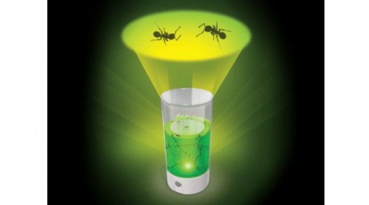 Turns out kids still play with ant farms. And to make it more fun, some companies started using green goopy gels for the harvester ants to dig into instead of dirt and sand. And just in case the kids get bored with that, the Ant Farm Revolution adds another twist — it can project shadows of the ants on your terrarium up on a ceiling.