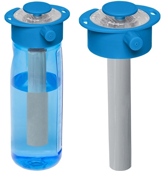 The device consists of a screw-on cap with a nozzle on the side and a trigger button at the top, along with a center tube that draws the water from the bottle. How hard you press on the trigger will determine how much water comes out, allowing you to be conservative with the liquid ammo when supply is low and go all-out when zooming in for the kill.