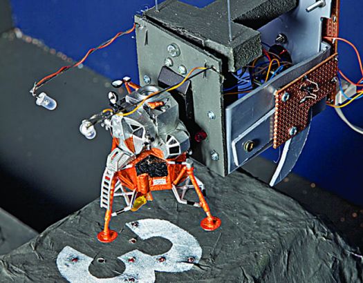 Created by British engineer Iain Sharp, the contraption was built to honor the 40th anniversary of man’s first landing at the moon. Like the original game, the player must attempt to settle a lunar module on the moon’s surface, with success determined by both descent rate and its proximity to actual target spots.