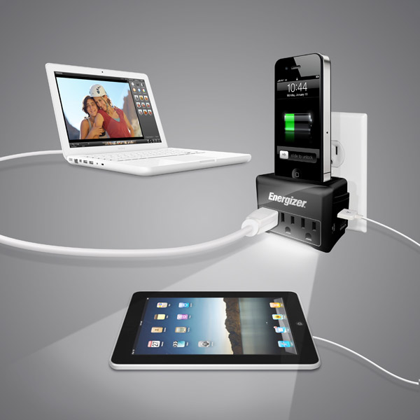 The Aviiq Portable Charging Station puts out 15 watts of power, allowing it to charge four gadgets at a time and be used with an iPad (which requires 10 watts).  It’s available now, priced at $79.99.