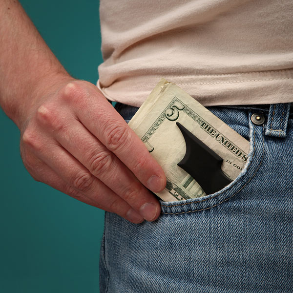 The clip folds straight down the center to hold your bills, keeping it in place using a magnetized grip. Since your Batman costume doesn’t have pockets (because it’s cheap — mine has a hidden one in the crotch), we guess you can slide this under your mask for safekeeping.
