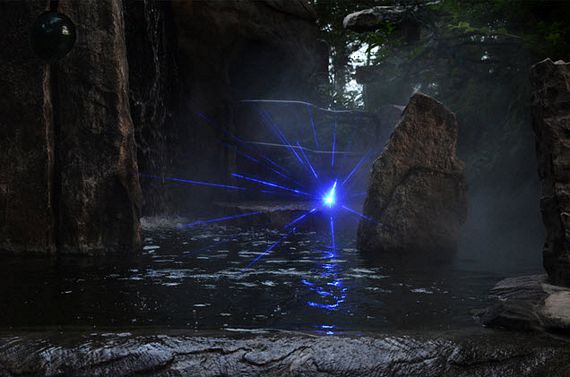 A portable lamp, it comes shaped like a giant dice out of a role-playing tabletop game with over two dozen sides, allowing it to spread the lasers in all directions from where it sits. The result is a bunch of floating lights scattered about, flying like a swarm of alien fireflies crowding your puny earthling ass.