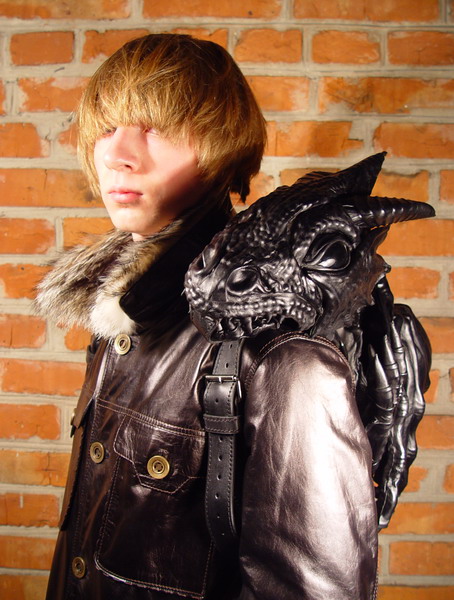 Looking at his archive, it appears to be the second iteration of the leather bag, with the original version posted back in 2006.  This new dragon looks even more realistic, with detailed scales, devilish horns and a glossy finish.  Let’s put it this way: the old one looked like a bag; this one looks like a mutant reptile hanging on your back.