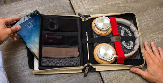 The BookBook Travel Journal comes with a padded compartment sized to hold a tablet or a smaller notebook, with a selection of pockets and adjustable bands for neatly organizing the rest of your stash. We’re particularly enamored with the right hand compartment and its four adjustable bands, where you can cram a full-sized pair of fold-flat ear cups instead of making do with tiny headphones for your music listening pleasure. The best part? You can camouflage the whole thing in a bookshelf with other old, dusty books, minimizing the chances anyone will mess with your gear (let’s be honest, no one really pays attention to crusty volumes these days).