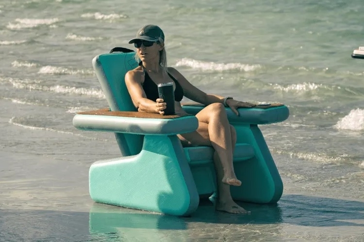 A big inflatable chair, it gives you proper-sized furniture to sit, allowing you to lounge along the beach as comfortably as you do in the large chair at your home patio. No more trying to squeeze yourself into a tiny folding chair with such a low seat – this thing lets you plop down and stretch your legs on a full-sized Adirondack-style chair.