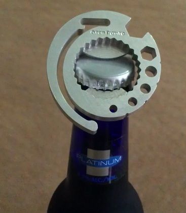 The best part, though, is the bottle opener, which you can employ two ways.  First, you can use it to pry a cap open. Unlike other bottle openers, it does so without denting the cap heavily, allowing you to use the cap again to cover the bottle if needed. Second, the underside of the bottle opener serves as a bottle twist opener (for twist-open caps), which you can also use to put previously-pried caps back in, effectively turning an erstwhile regular cap into a twist cap. Since it still leaves a very slight dent, you probably won’t be able to preserve the fizz in the drink, but this makes it possible to close a bottle that would have to stay open permanently otherwise.