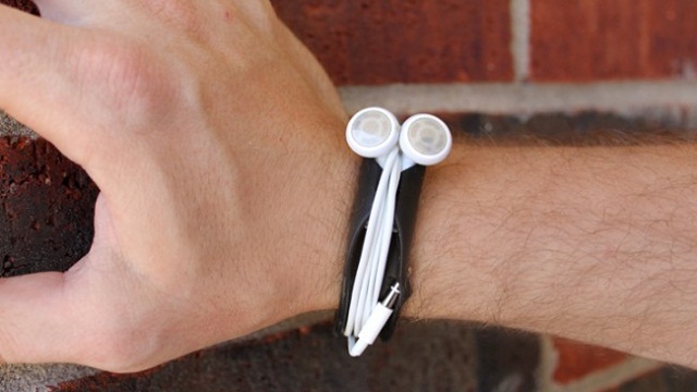 Created by a Texas teacher named Mark Williams, it’s a LiveStrong-style bracelet that come with fittings for holding your earbud-style headphones without leaving them a tangled mess. The idea came from watching his students in school, many of whom walked around with bands on their arms and earbuds dangling from their heads.