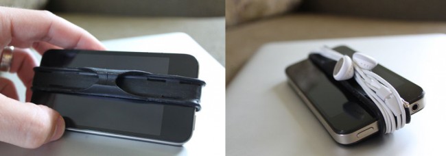 The Budwrap is a silicone wristband that come with a pair of flaps under which you can tuck in your earphones before winding the cable around its length. Cutouts around the band let you lock in the headphones by slipping the connector into them.