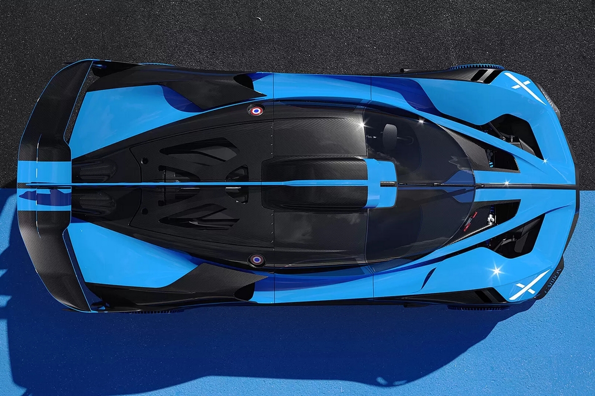 The Bugatti Bolide uses the same quad-turbo 8.0-liter W16 that’s powered their most recent hypercars, with this particular configuration putting put 1,825 horsepower and 1,364 pound-feet of torque, which would be enough to let it reach top speeds of 310 mph and take a lap of Le Mans in around 3:07. This is, of course, a modified version of the engine, with four newly-developed turbochargers to build up boost pressure and power at higher speeds, along with derestricted intake and exhaust systems that deliver a more instantaneous response. It even gets a new oil system that’s been raised to cope with the high centrifugal forces the car will experience on the track.