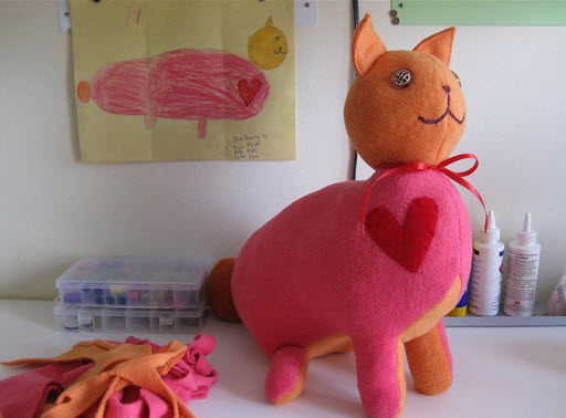 The handmade softies are built to order based upon whatever far-out image your child managed to scribble on paper.  There are no guidelines for what kind of characters and figures they can bring to life, but you will have to send in the drawing for review before they’ll accept an order.