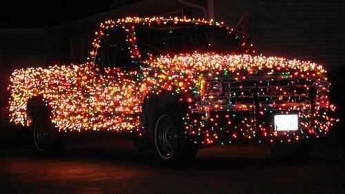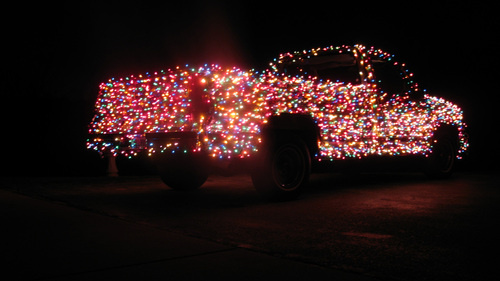 The Christmas Truck is about as low-tech as it can get. For illumination, it simply uses lines upon lines (between 50 to 70 sets) of Christmas lights attached to the body using electrical tape, powered by a generator hoisted on the cab. It looks amazing at night and, in fact, has appeared as a part of various parades in the Dallas and Polk County areas over the years.  During daylight, though, it’s a four-wheeled monstrosity of green wires and black tape.