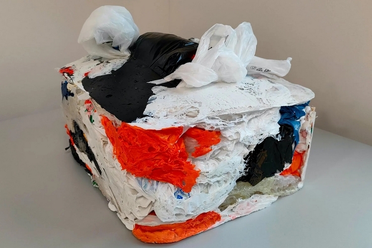 Once everything cools, the soft plastics remain loose inside the pile, but with a plastic skin sealing everything in. This makes the whole thing incredibly easier to transport, with no chance of any of the recyclable trash coming apart or flying off in the way it usually happens with soft plastics.
