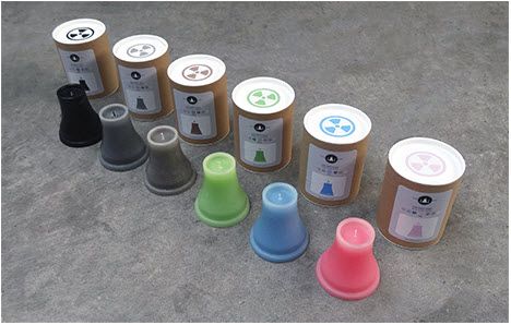 The Cooltower Candle is made from paraffine and comes in seven colors — black, brown, gray, green, pink, blue and white.  Each one comes in a cylindrical box, with a lid that’s appropriately labeled as a nuclear hazard for extra giggles.  We’re not sure how tall the candles are, but they have a burn time of 18 hours before melting down (and, we guess, turning everything within a couple dozen miles into awesome mutants of sorts).