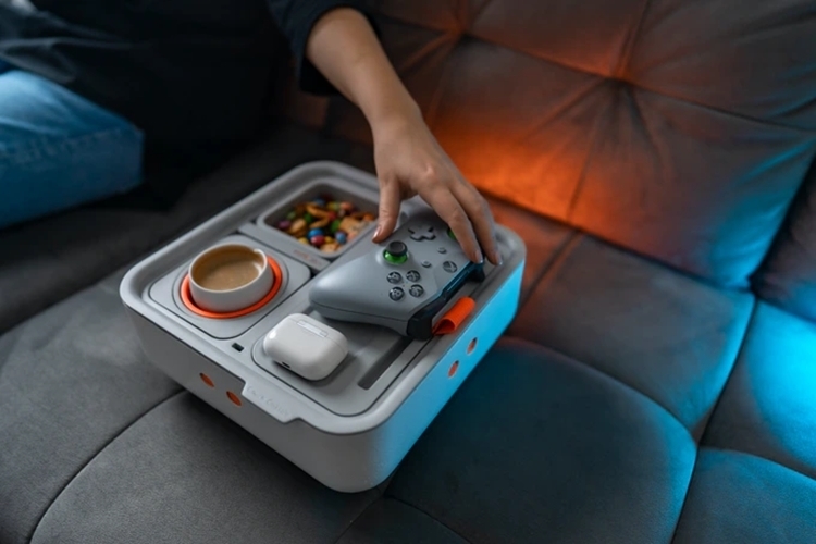 The Couch Console also has a USB-C slot on top of the tray, which is connected to a plug inside the tray, allowing you to keep a power bank in there for charging phones, controllers, and whatever electronics you suddenly find the need to recharge without getting up from the couch. According to the outfit, they also added a counterweight at the bottom of the box, so it should be able to stay stable for the most part even when you move around on the couch. And yes, this should work just as well for the bed, too, in case you prefer to do your binge-watching and gaming from the comfort and privacy of your bedroom.