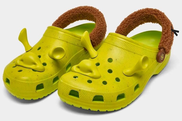 That’s right, Crocs is making a Shrek-themed version of their classic clogs, which, in classic Crocs style, seems deliberately designed to be the ugliest shoes you’ll ever lay eyes on. We mean… look at that thing. It’s a pair of ogre green Crocs with Shrek’s ears and nose on it, making for a pair of clogs that are equal parts hilarious and horrifying at the same time.