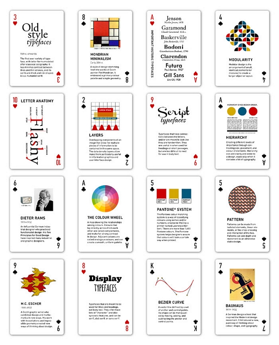 Like other playing card decks, each of the card faces feature a corresponding suit and rank. Unlike them, though, each of the 52 cards’ faces also come printed with individual graphic design lessons, essentially making it a pocket-sized textbook on the subject. You can read them in some order the way you’d read a regular book or randomly browse each while you’re playing with the cards, getting your bite-sized lessons on the fly.