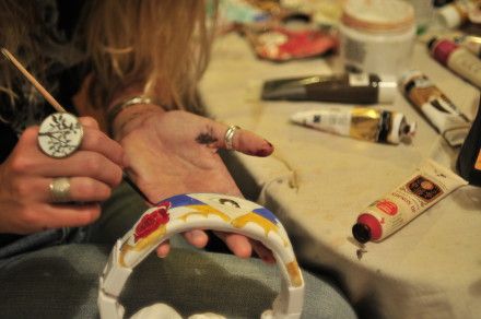 The headphone body is made from synthetic nylon, which makes it an ideal canvas for your artistic expression. Features include 57mm drivers, swiveling ear cups with a spring return, pliable headband for comfort and two included cables (a thick coiled one and a thin straight one).