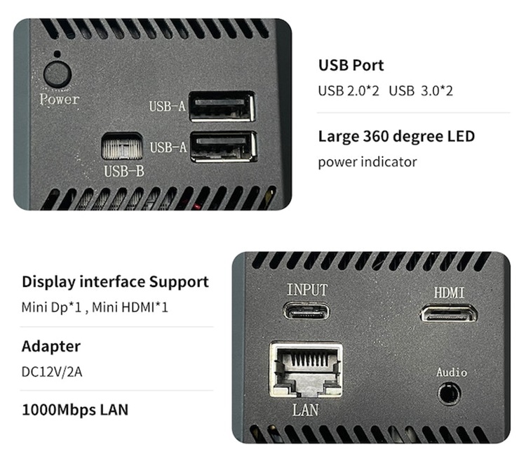 Despite the diminutive size, it’s not lacking in ports, coming with two USB-C slots, two USB-A, one Mini DisplayPort, one HDMI slot, gigabit Ethernet, and even a 3.5mm slot for audio. That’s right, this tiny thing has two display outputs, both of which support full 4K resolutions. According to the outfit, you can use a split adapter on each of the two display outputs to connect up to four monitors, although they should be maxing out at 1080p apiece. Yeah, we probably won’t even try that, since hooking up a pair of monitors will probably be too taxing for this little thing already.