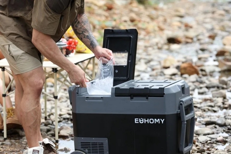 The Euhomy E-Cooler and Ice Maker divides its main compartment to two sections: a 34.9-quart refrigerated area and a 12.7-quart ice chamber. The refrigerator section can hold up to 32 standard-sized beverage cans or 26 550ml bottles, so you can pack a whole lot of refreshments inside it. Plus, since it makes ice, you can even enjoy drinks from out of the cooler, since you can just put them in a cup with some ice to enjoy chilled drinks. Temperature inside the fridge can be adjusted anywhere from -20 to 10 degrees Celsius (-4 to 50 degrees Fahrenheit), so you can use it to not just keep drinks chilled, but even keep food items frozen as long as you need, so long as you can recharge the onboard battery.