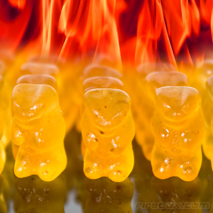 You like Gummi Bears.  You like ’em big.  You like ’em small.  You like ’em in all colors.  You like ’em so much, you end up finishing a bag faster than you can check your email in the morning.  And that’s not a good thing.  You need to find a way to control this obsessive Gummi munching.  Maybe these Evil Hot Gummi Bears could help.
