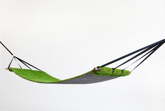 The Field Hammock is what would happen if you sliced a rectangular bed of grass from the ground and hung both of its ends on a tree. You can lie down on it and swing suspended from the ground like a regular hanging bed, rocking gently left and right as you lull yourself into rest. If we lived in a cartoon world where the laws of physics worked in hilarious ways, that is.