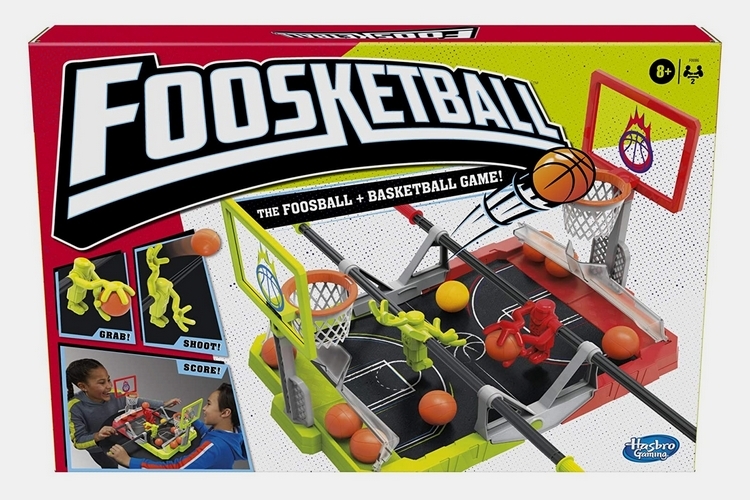 As you can tell from the name, it’s a Frankenstein game that combines elements of foosball and basketball. It works just like foosball, with players held on a rod that you can push and turn on the play area, except instead of kicking the ball to the goal, you’re supposed to grab it and shoot it through a rim on an elevated backboard at each end of the board.