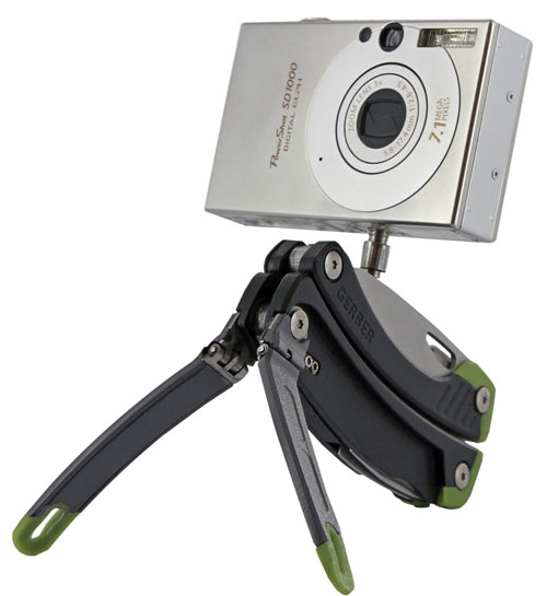 A tripod actually makes perfect sense for a pocket multi-tool. If you’re going to carry one for a camping trip or a weekend hike, you may as well take that one you can use to pose for a photo with a bear (or a half-naked jungle woman) you meet in the middle of the woods, right?