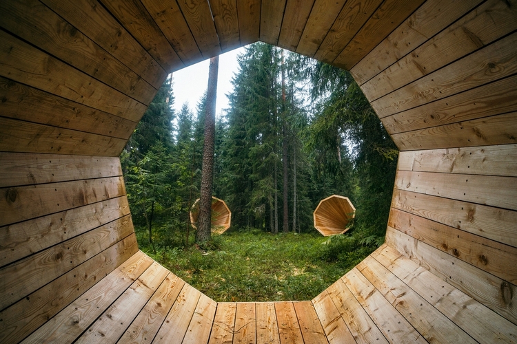 Built by interior architecture students from the Estonian Academy of Arts, it’s a trio of supersized wooden megaphones set up in a section of the Pähni Nature Centre. Sit inside the hollowed interior and you can hear the amplified sounds of the natural world, from leaves rustling to birds chirping to some dude hiding in the corner thinking he can let out gas in secret. Yeah, wrong position, dude.