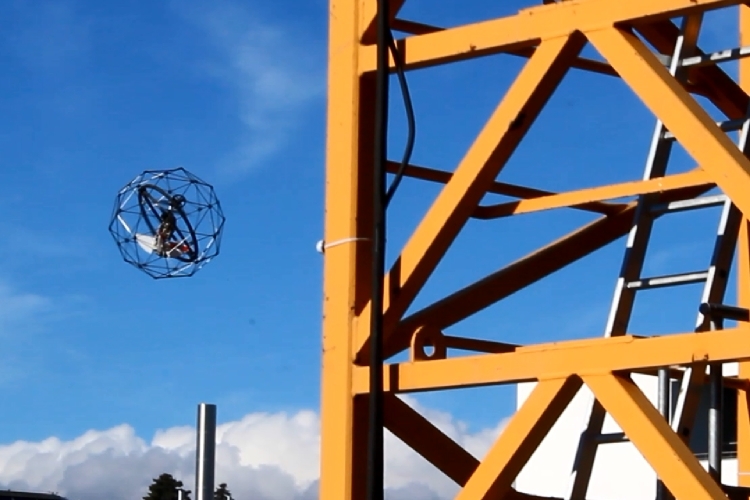 Gimball is a small two-rotor drone with the actual flight mechanism housed inside an orb-shaped carbon fiber cage. The impact of any collision will be absorbed by the cage alone, with an onboard electronic stabilizing mechanism automatically leveling the assembly, so it can quickly continue flying even after running into an obstacle. That way, the remote pilot doesn’t have to bother maneuvering carefully when flying the machine indoors, allowing them to survey the area at a much quicker pace. And when it comes to search and rescue, a drone that can fly through the tightest hallways, the narrowest stairways, and other erstwhile obstacle-packed situations can prove downright indispensable.