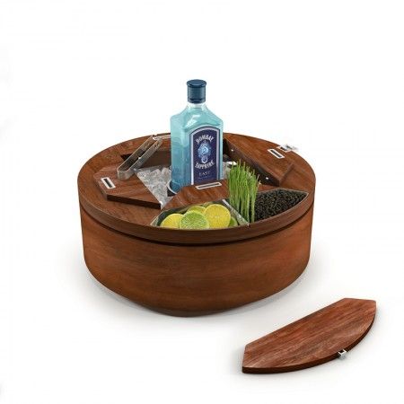 Your wife has laid down her verdict: a big fat “no” to the mini-bar in the living room proposal you filed last night while you were talking in bed. She doesn’t mind the cost, she just minds the idea of a bar taking up an entire corner of her home. Well, how about a really compact serving box like the Gin Wheel?