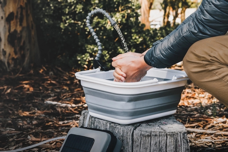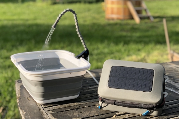 If you want more creature comforts, they also offer a Pro kit that includes a collapsible plastic sink and a clip-on faucet/shower head with a bendable arm, so you can wash dishes and take showers like civilized people. Want hot showers? Get the Ultimate package, which adds a bigger 144Wh battery and a heater to the mix.