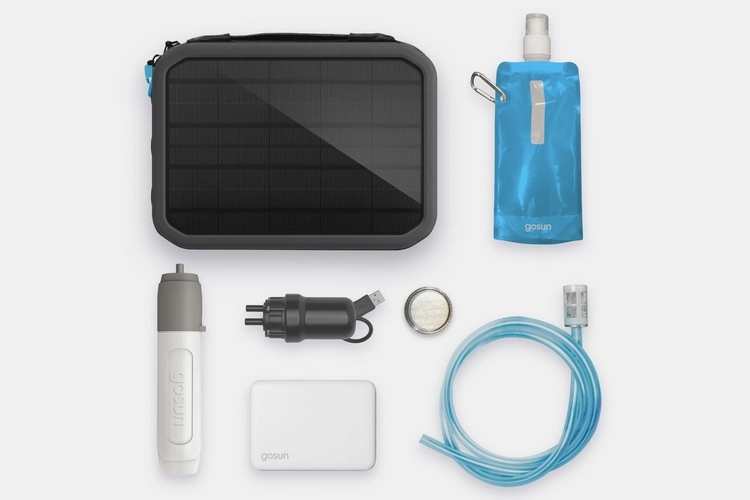 What sets the rig apart, however, is the inclusion of powered components. Connect the pump to the power bank via USB, hook it up to the two tubes, and you’ve got yourself an automated pump system that draws water from one tube and passes it on to the next. Just make sure the receiving tube is connected to the filter and you’ve got yourself potable water coming out at the other end. You can also connect the power bank to the solar case to ensure it’s replenishing whatever power is being used up, so you can have the pump system on tap whenever you need it.