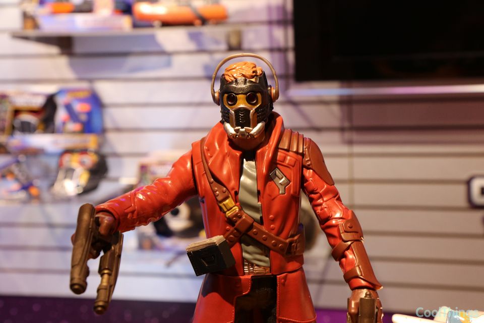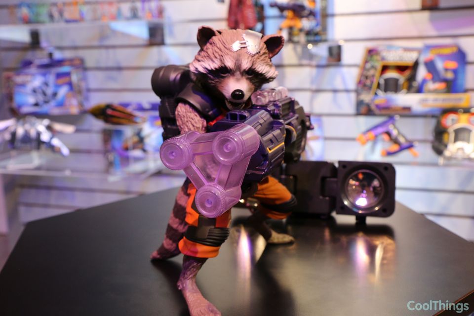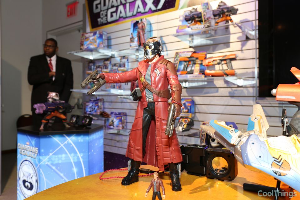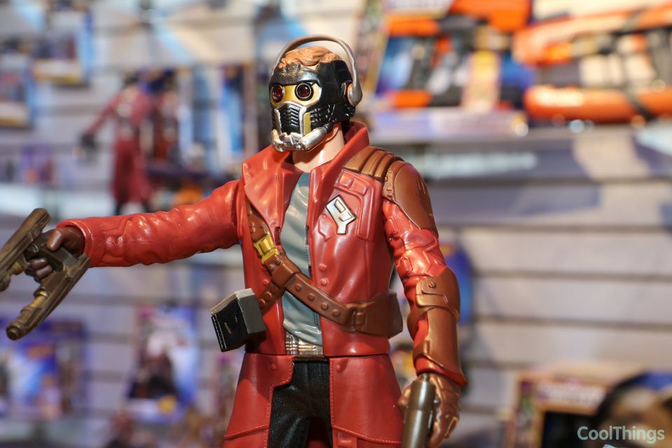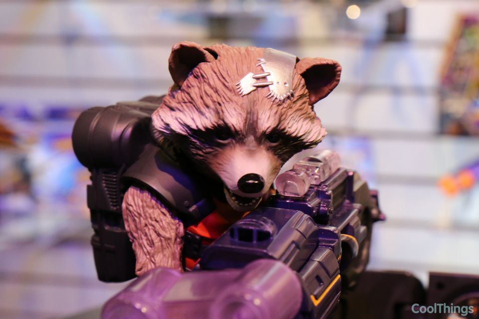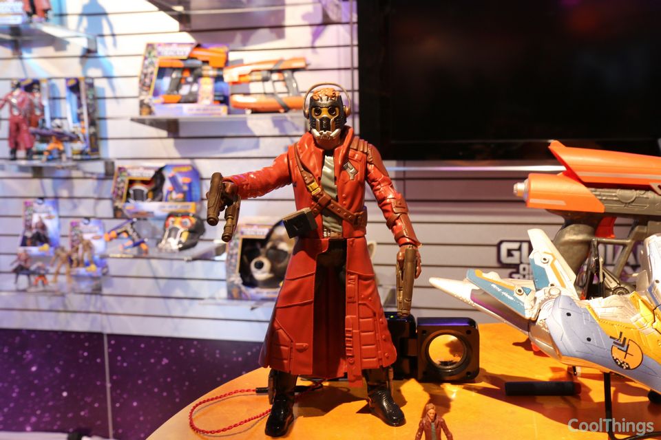 Aside from the action figures, other Guardians of the Galaxy toys were also on hand, including specialty blasters (Star-Lord’s quad-blaster), a Rocket Racoon mask, vehicles, and more. Expect the toys to roll out shortly before the movie hits theaters in the summer.