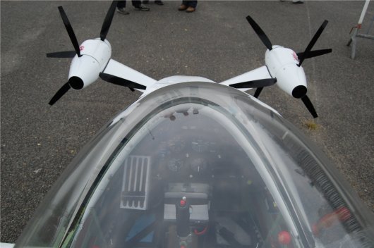 Created for scientific research rather than commercial sale, the Green Cri (whose body is based on 70s-era Cri Cri aircrafts) is intended as an experimental platform for green propulsion technologies. The prototype shown at the event uses four high voltage, low intensity brushless electric motors with counter-rotating propellers, shedding the usual fuel engines found on regular aircrafts.