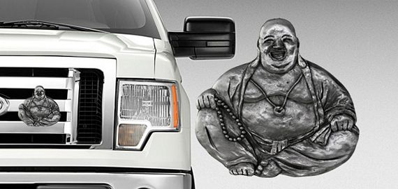 Designs vary from fishes to dogs to car parts to religious icons to a couple of lowbrow numbers (e.g. Mudflap Girl) for those of us who like our classy adornments with a little plebeian spirit. Sure, they’re far from the most attention-grabbing items you can pick up for your ride, but you know damn well style is truly in the details.