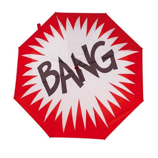 When opened, the canopy expands to a 103 cm. diameter, offering ample protection for one under the rain.  Just so you truly enjoy using the umbrella, they emblazoned the outer part of the canopy with a pop-gun-style BANG graphic — a nice touch that leaves it all the more entertaining.