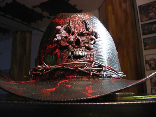 If you love your Stetson straw cowboy hats but can’t stand looking like you just got off the ranch, the outift’s personalized designs should guarantee nobody makes that mistake. Building off pre-bought cowboy lids as a base, proprietor Hillbilly Joe turns the classic-looking headwear into intricately morbid masterpieces that look just at home in a death metal moshpit, as it does in a wasteland version of the Wild West.