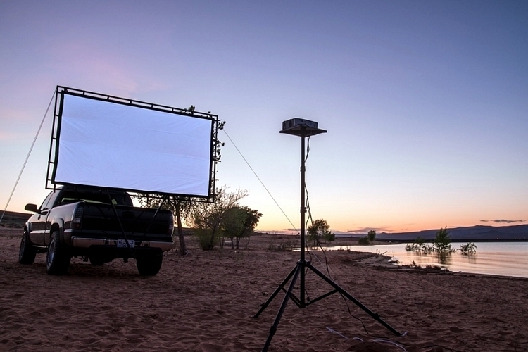 The Hitch Theaters projector screen can be mounted either facing a pickup truck’s bed or facing away from it. That way, you can enjoy a movie while lying down on the truck bed or turn your truck into a mobile theater for the whole party to enjoy. They offer two kinds of projector stands to accommodate both – a rooftop stand for watching from the truck bed and a tall stand for projecting from off the truck. And, yes, they also offer a freestanding projector screen for those times you need the truck for something else.