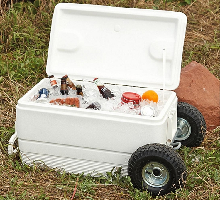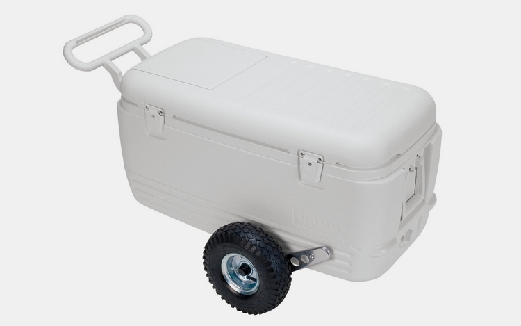 Taking a cooler to outdoor events is easy enough. Lugging it with you if plan to move around, however, is another thing entirely (unless you were prepared enough to bring a cooler cart). Not the case with the Igloo All Terrain Cooler, a line of ice boxes armed with rugged 10-inch pneumatic tires that you can comfortably drag over rocks, sand, and other rough terrains.